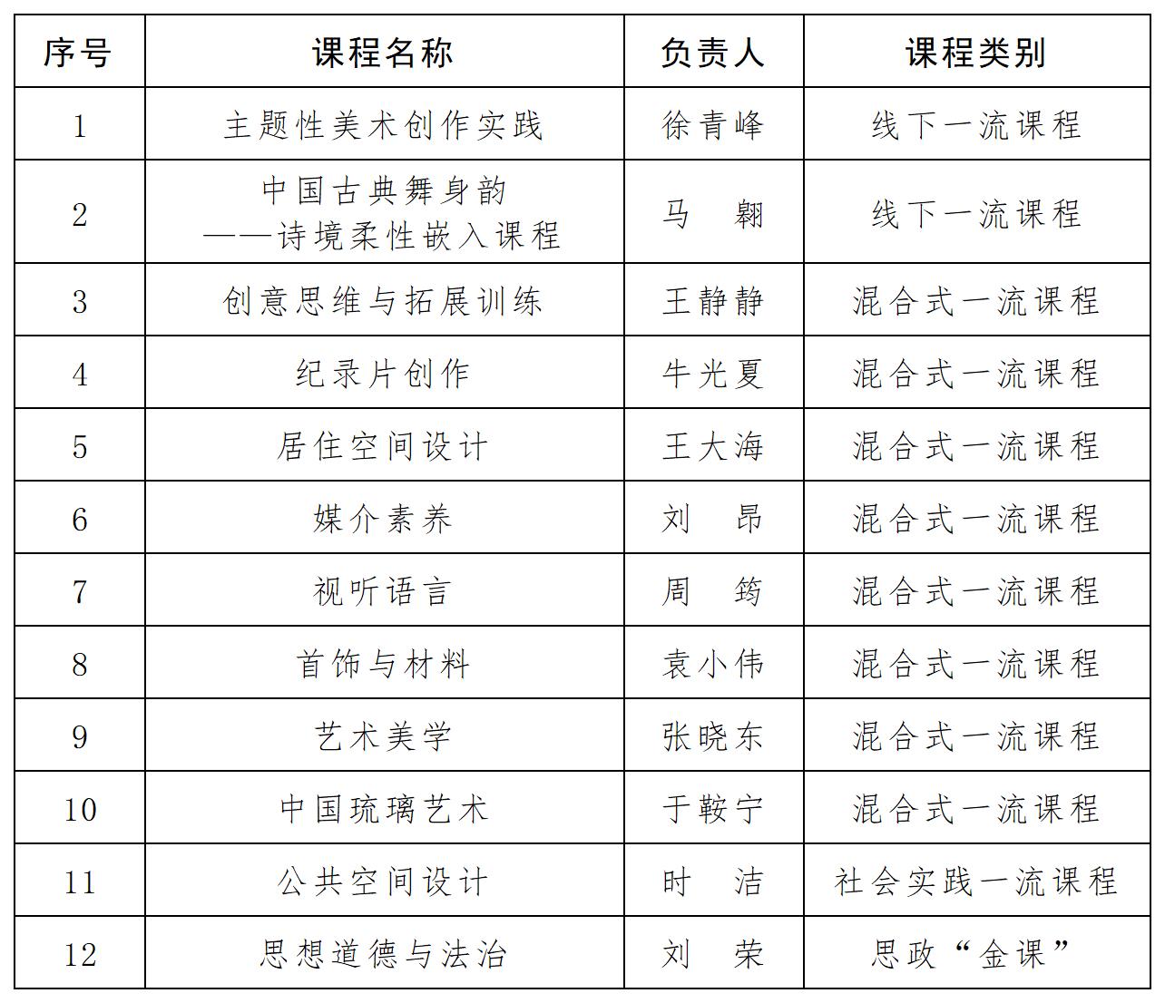 近日,山东省教育厅公布了第三批省级一流本科课程建设公示名单和第二批全省学校思政“金课”立项建设名单,我校12门课程获批,其中,线下一流课程2门,混合式一流课程8门,社会实践一流课程1门,思政金课1门。同时,《主题性美术创作实践》《居住空间设计》《视听语言》《中国琉璃艺术》,以及前两批省级一流本科课程《中国音乐史》《当代设计评论》《设计调研与策划》等7门课程被山东省教育厅推荐申报国家级一流本科课程。